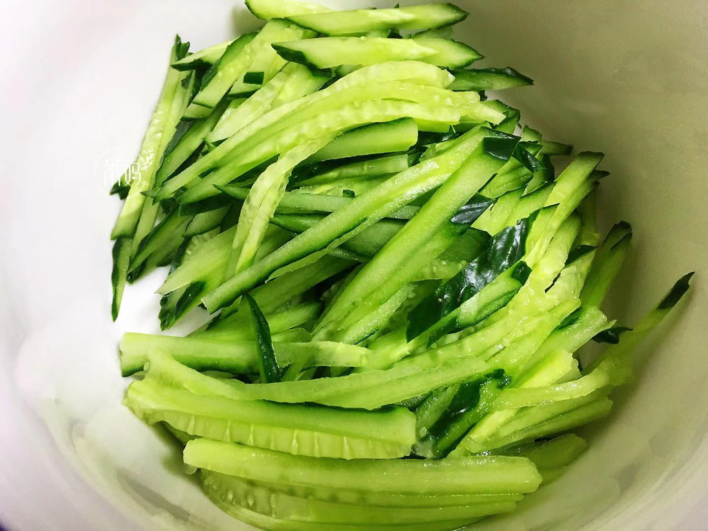 3、青瓜清洗干净,再切丝或者是刨丝放入碗中。