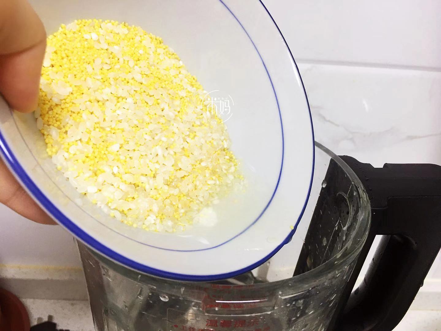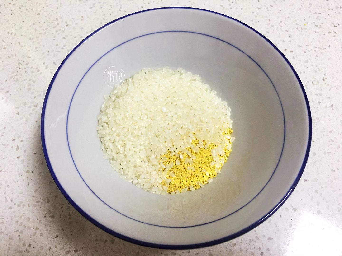 2、小米和大米的比例是1:1,一小杯即可,清洗干净。放点大米一起煮,打出来的汤羹又细腻又嫩滑,超好喝的。