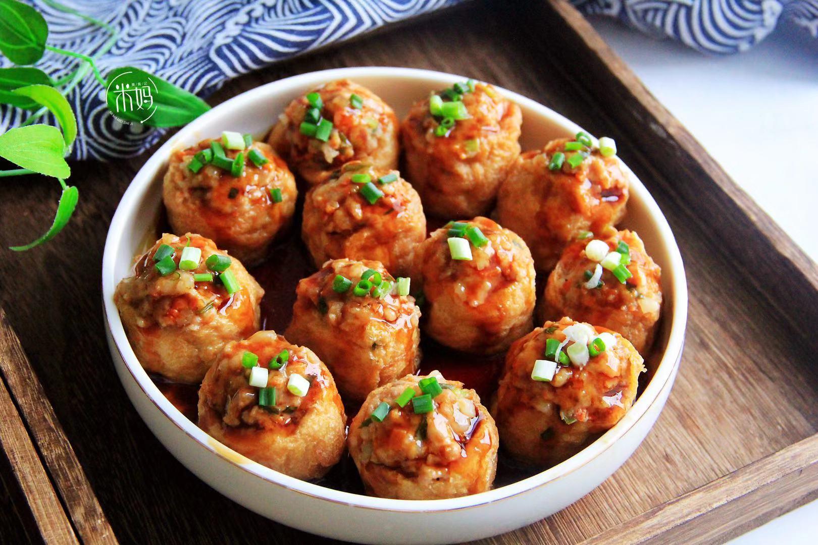 色泽金黄鲜亮的油豆腐包裹着喷香入味的馅料,看着饱满圆润,一口一个,营养又美味,真的可以吃出满满的幸福感,一出锅孩子连吃5个还想吃!