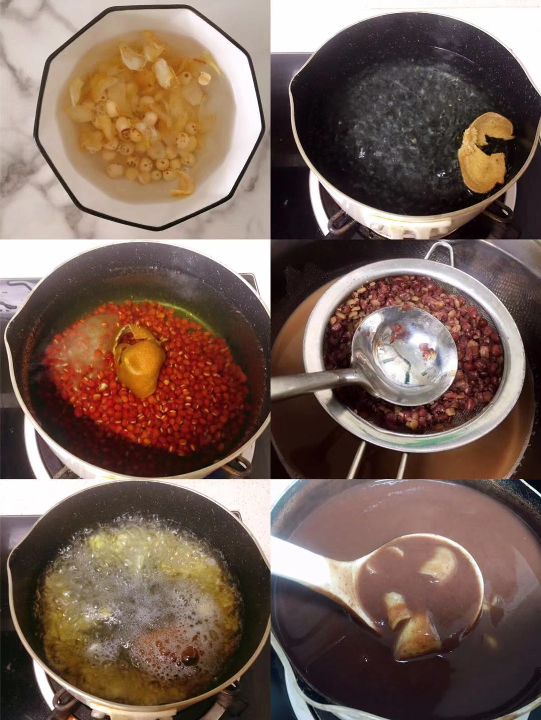 1、红豆提前浸泡3个小时以上,莲子和百合浸泡片刻,清洗干净备用。