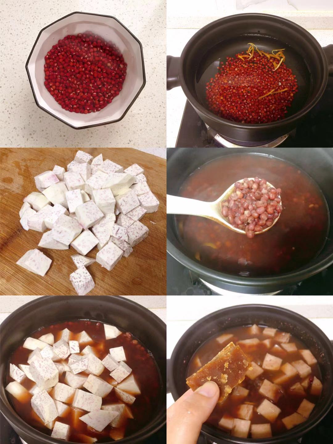 3、煮豆子的时间,把芋头去皮,洗净切块。