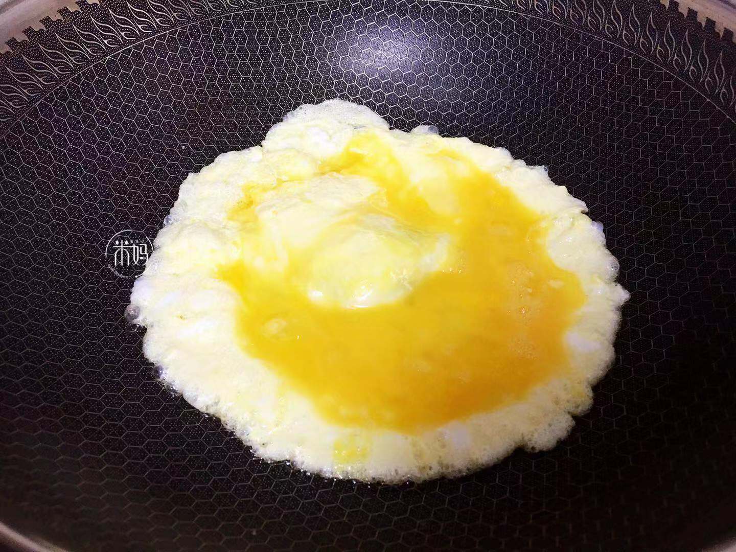 3、锅中加入适量的油,加入鸡蛋液,炒至鸡蛋凝固就盛出。