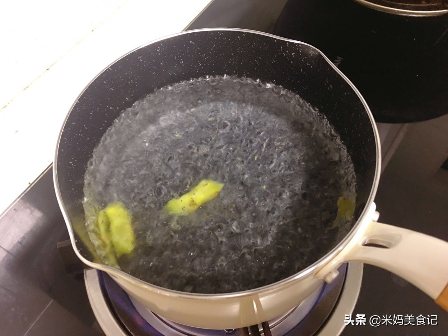 第四步:锅中注入清水,煮开,加入姜片,1少料酒增香。