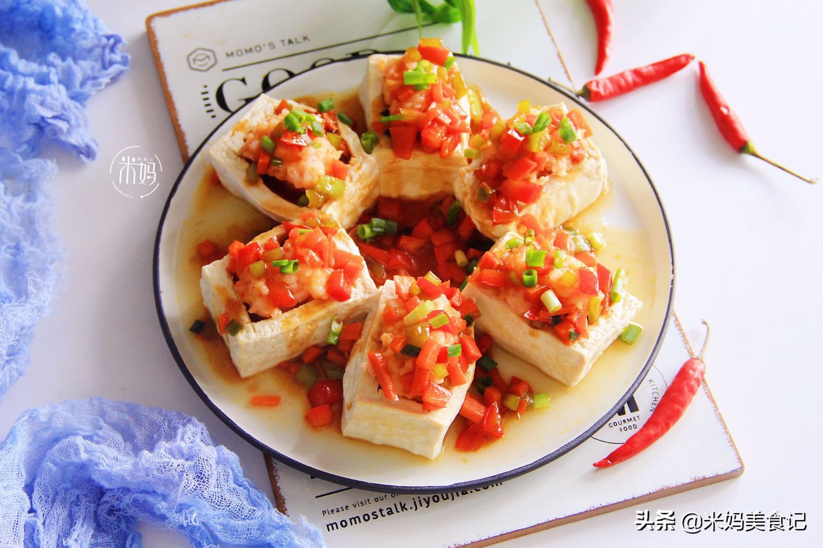 说起酿菜,让你马上想到的应该是酿苦瓜、酿青椒,酿豆腐,而酿豆腐给人的印象一般是酿油豆腐,其实,白豆腐也可以做酿菜呢!传统的白豆腐,也就是我们说的水豆腐,大家都爱煮着吃或者炖着吃,今天分享另一个美味的豆腐吃法给大家,可以别再炖着吃或者煮着吃了,这个吃法不仅颜值高,而且营养又好吃,荤素搭配超美味,我说的就是豆腐酿虾仁~