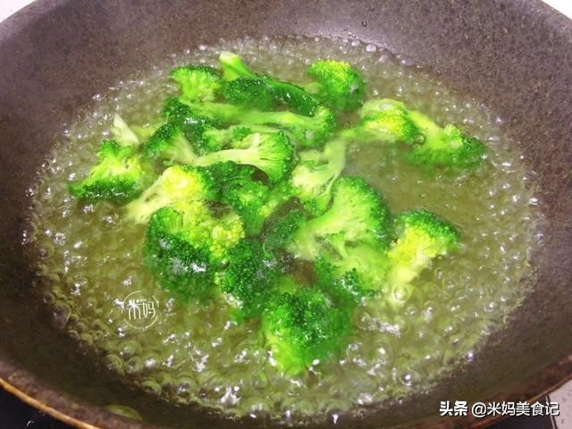 步骤六:最后加入西蓝花,快速翻炒。