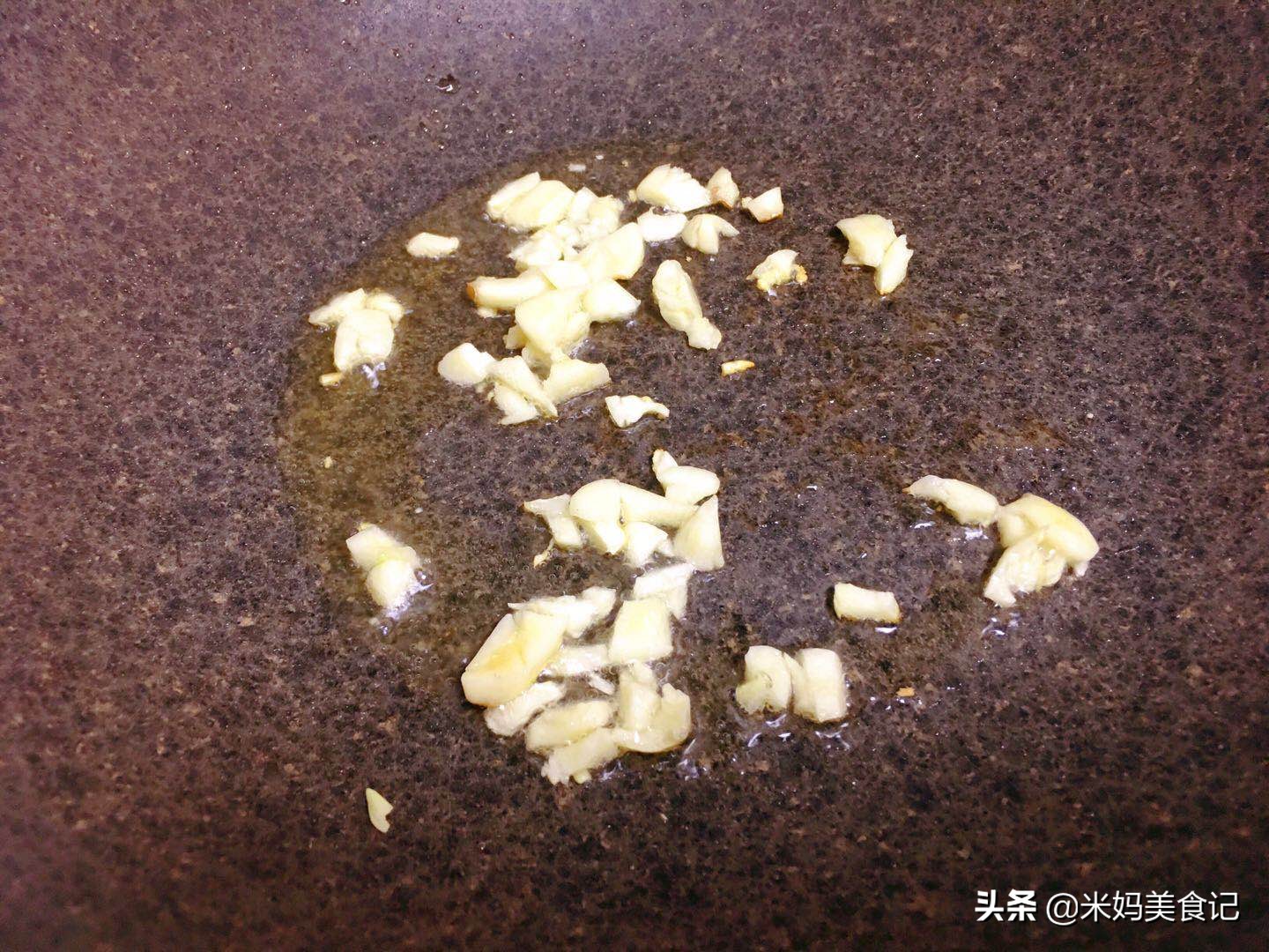 第四步:把锅清洗干净后,锅中放油,油温6成热后,加入剁好的蒜末,慢慢地炒出香味。