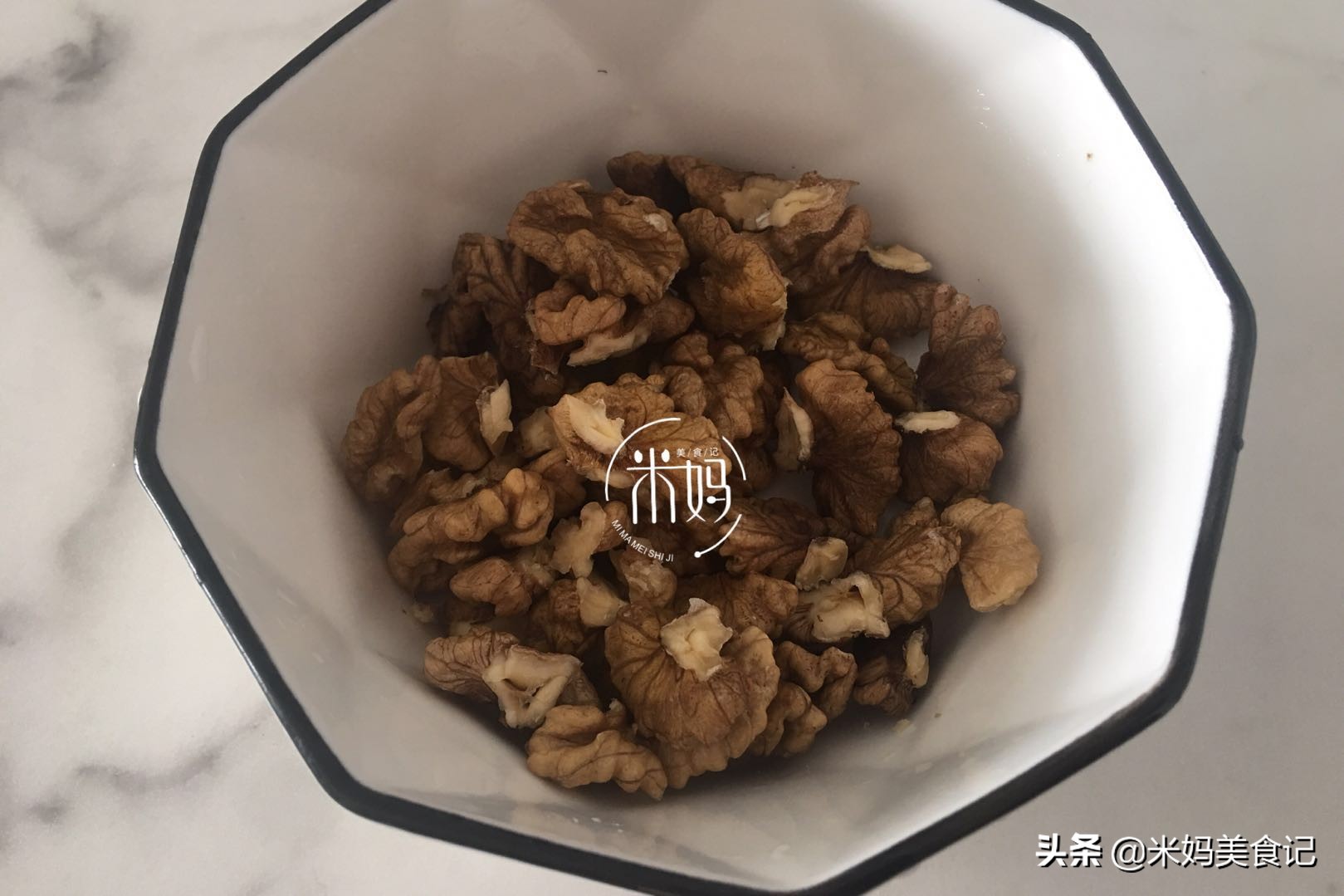 第二步:核桃用钳子压开,把核桃仁取出,用清水浸泡半小时,这样可以去掉核桃的苦涩味;
