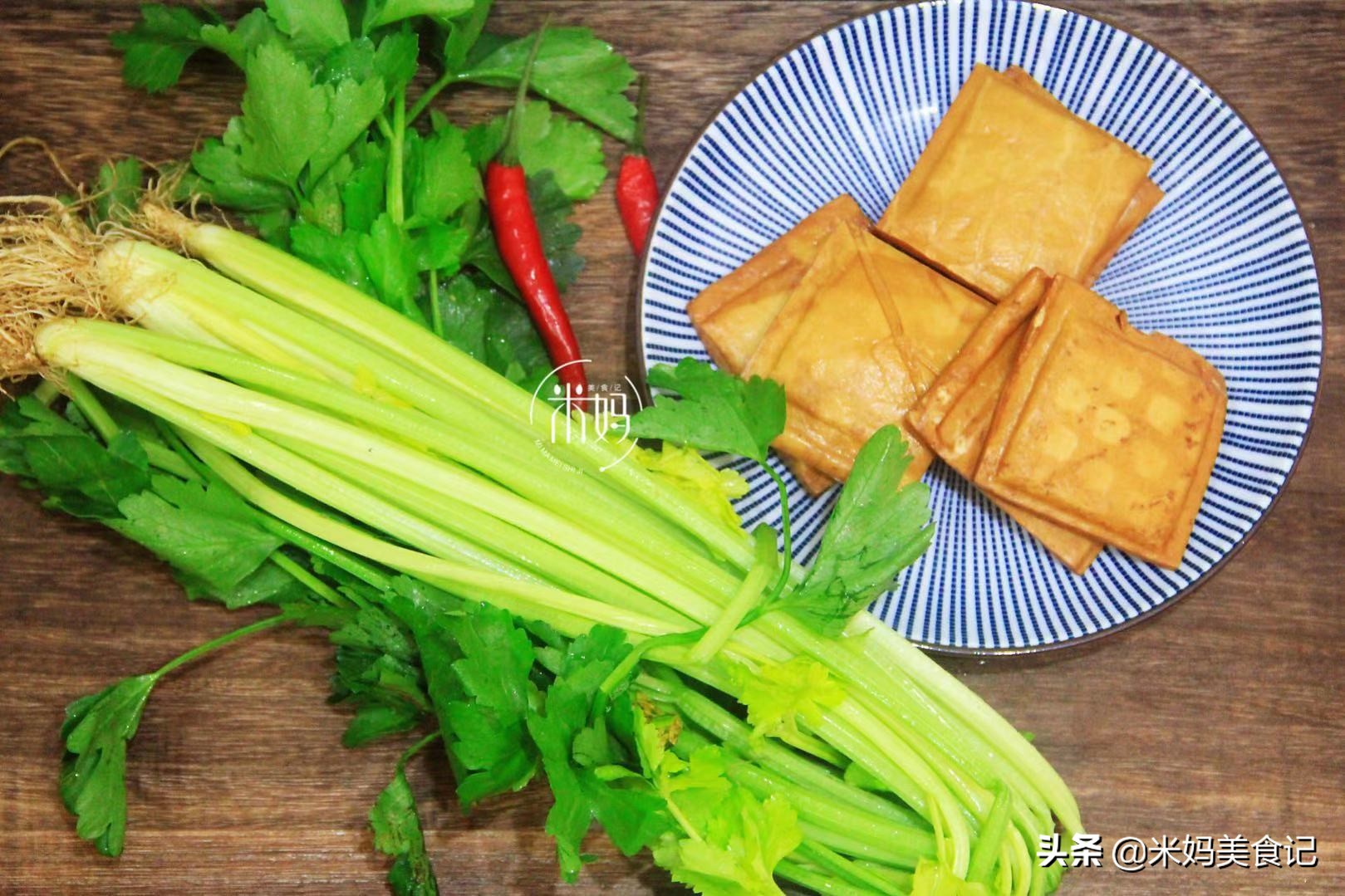 比如我今天要跟大家分享的这一道菜——芹菜炒豆干,虽然只是看似一道简单而又普通的菜谱,但是比起大鱼大肉来,可是要营养开胃得多!比肉还养人!芹菜,是降压降脂的蔬菜,大量粗纤维能润肠通便,也不会增加肠胃负担,美容又养颜等等,营养高,香气浓郁,还能增加吃饭的食欲呢!要是你最近食欲不佳,不妨试试吃芹菜开开胃~