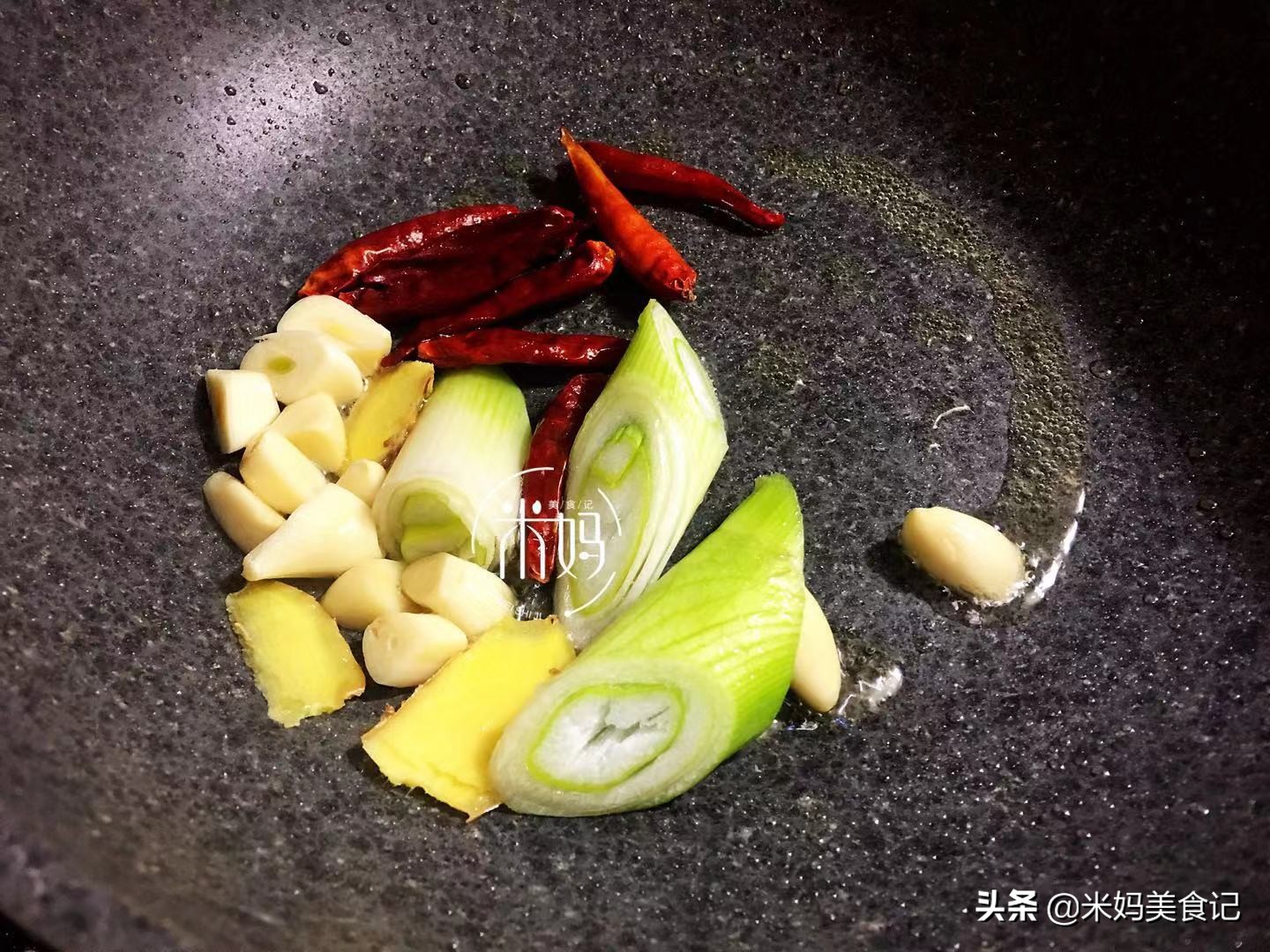 第三步:把锅洗干净,热锅凉油,下葱姜蒜和干辣椒一下煸炒出香味。