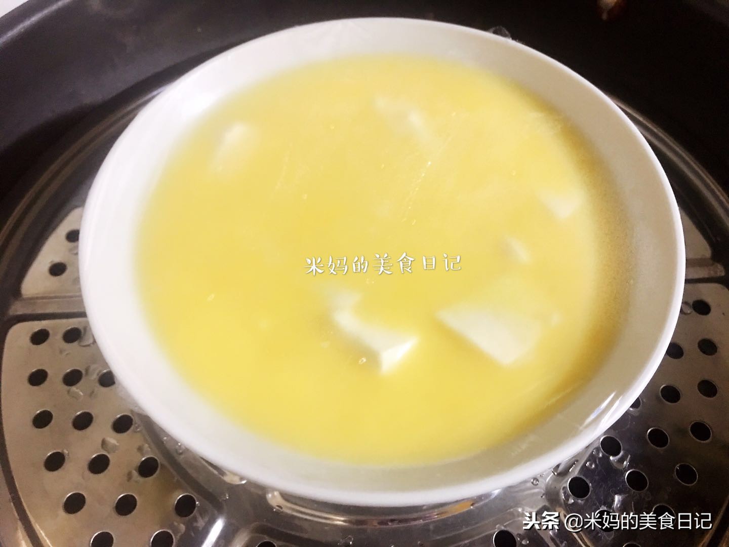 4.锅中的水煮开后,把鸡蛋液放进锅中,大火隔水蒸15分到18分钟,然后关火再焖5分钟。