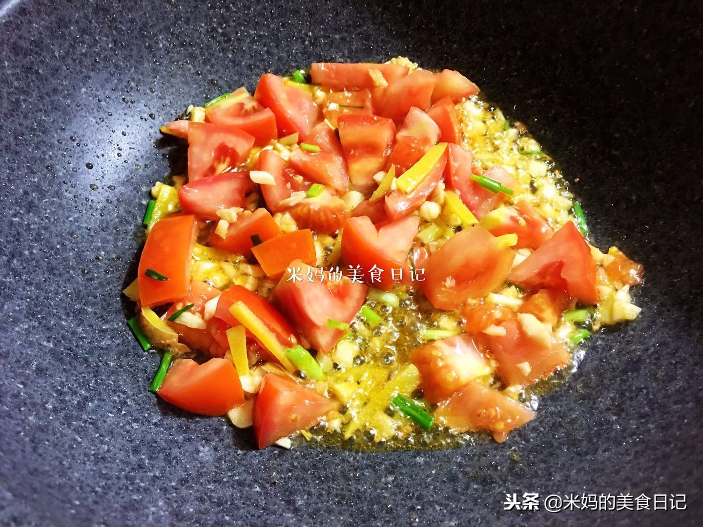 7.最后加入少许葱花和盐调味,如果喜欢汤汁少点的,这个时候可以大火收汁了。一般我喜欢汁多点的,孩子吃喜欢用番茄汁拌饭吃,可鲜啦~