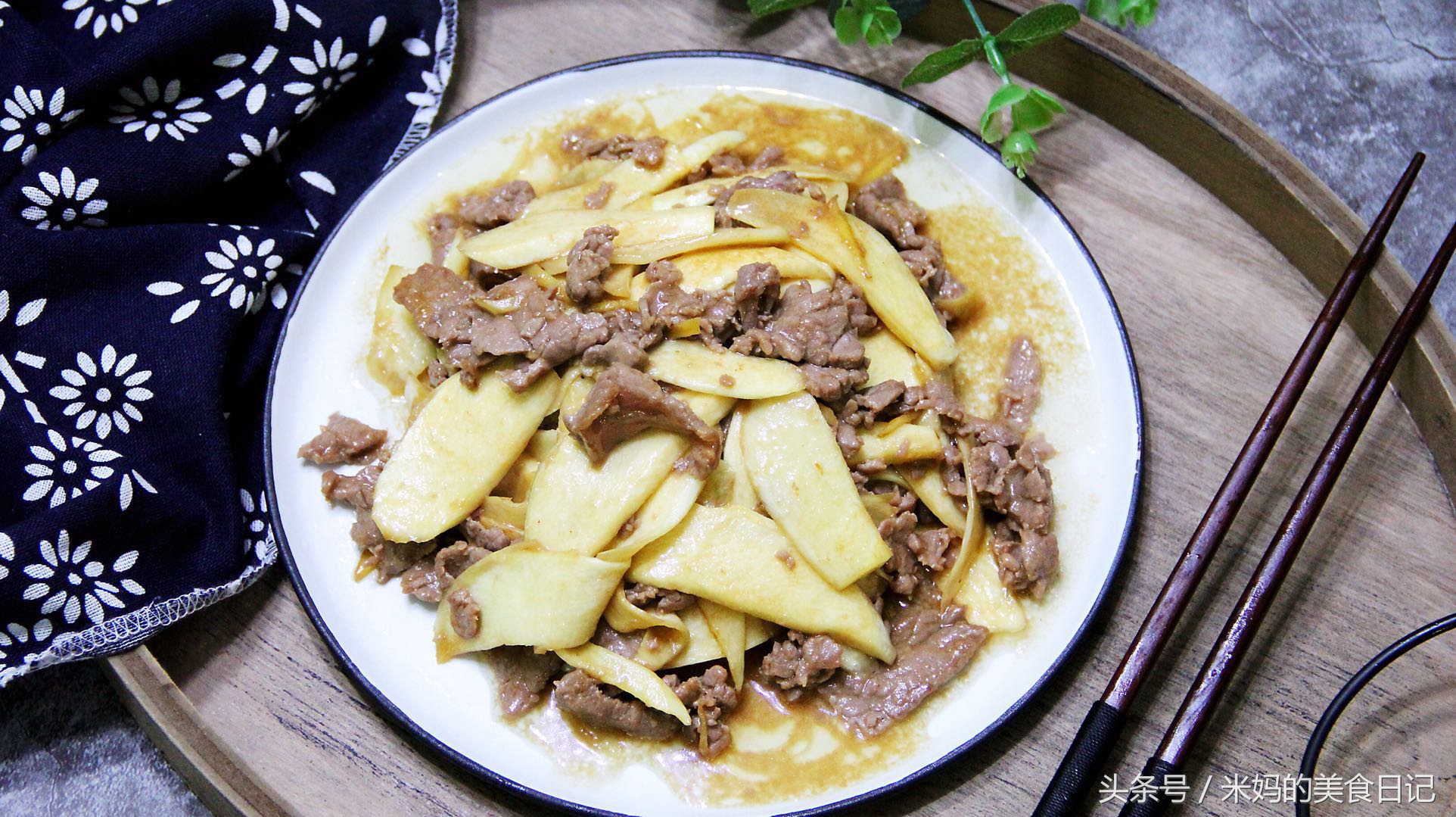 牛肉炒茭白,2棵茭白,就炒出拉一大碟,炒着菜的时候,老妈在旁边指导,炒出来的味道真是太棒了!从切牛肉到腌制牛肉直到炒好这菜,出锅后,老公直夸好吃,孩子也吃的不亦乐乎,筷子没有停过!今天就把做法分享给大家,很简单的一道菜谱,一家人秒光盘。