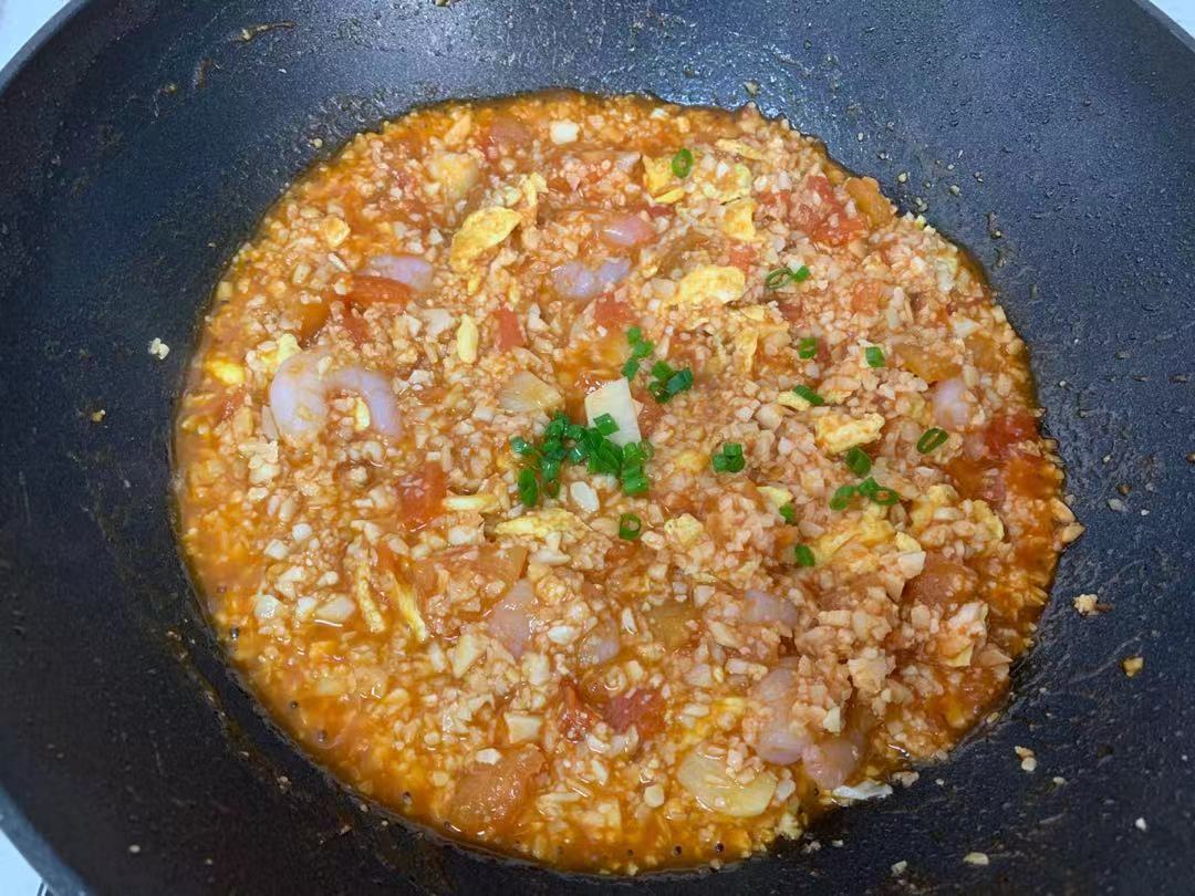这一道独特的减脂餐,用花菜完美的代替了米饭,低卡又健康,维生素也更加丰富了,毕竟每日补充定量的维生素是身体日常所需。烩饭的汤汁鲜甜浓郁,酸酸甜甜的番茄搭配,鲜美可口极了,关键是大口吃也不怕胖,一点儿负担都没有。也没有添加一粒米饭,让你越吃越瘦,做法更是无敌简单,就连小白也可以0失败,超级适合正在减脂期的懒人版无米鸡蛋番茄烩饭,分分钟让你好吃到舔盘子呢!赶紧动手试一试吧,低脂饱腹,营养美味,多吃不胖哟。