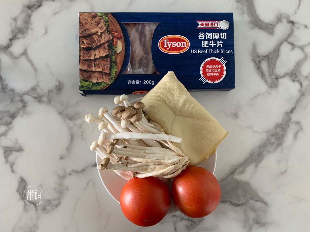 肥牛,番茄,海鲜菇,蟹味菇,豆皮