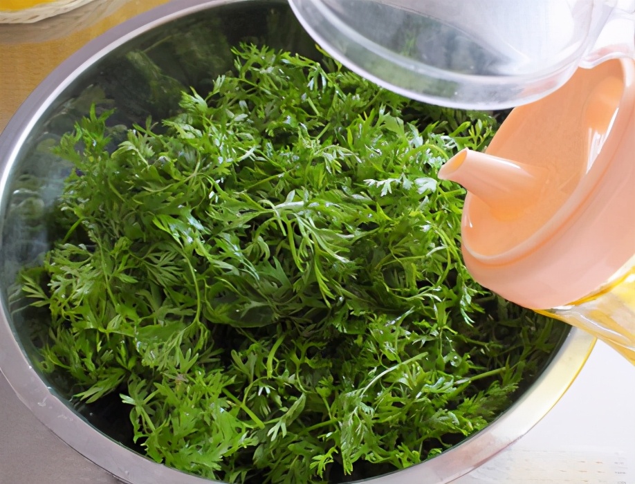 1、新鲜的胡萝卜缨记得要先放入盐水中浸泡,可以逼出其中不易洗掉的杂质或者是小虫子,吃着更加干净卫生,洗净后尽量要控干水分,不然水太多了,蒸的胡萝卜缨很容易成一团,影响口感;