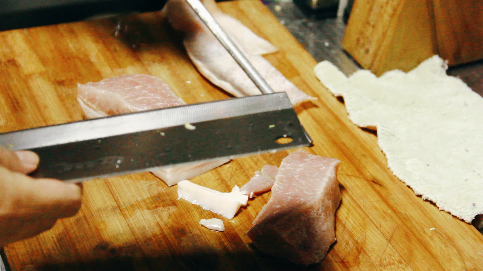 更何况今天我要切非常小的碎肉丁,切碎肉丁这一步需要掌握肥瘦的比例,计算好吃着才会香,