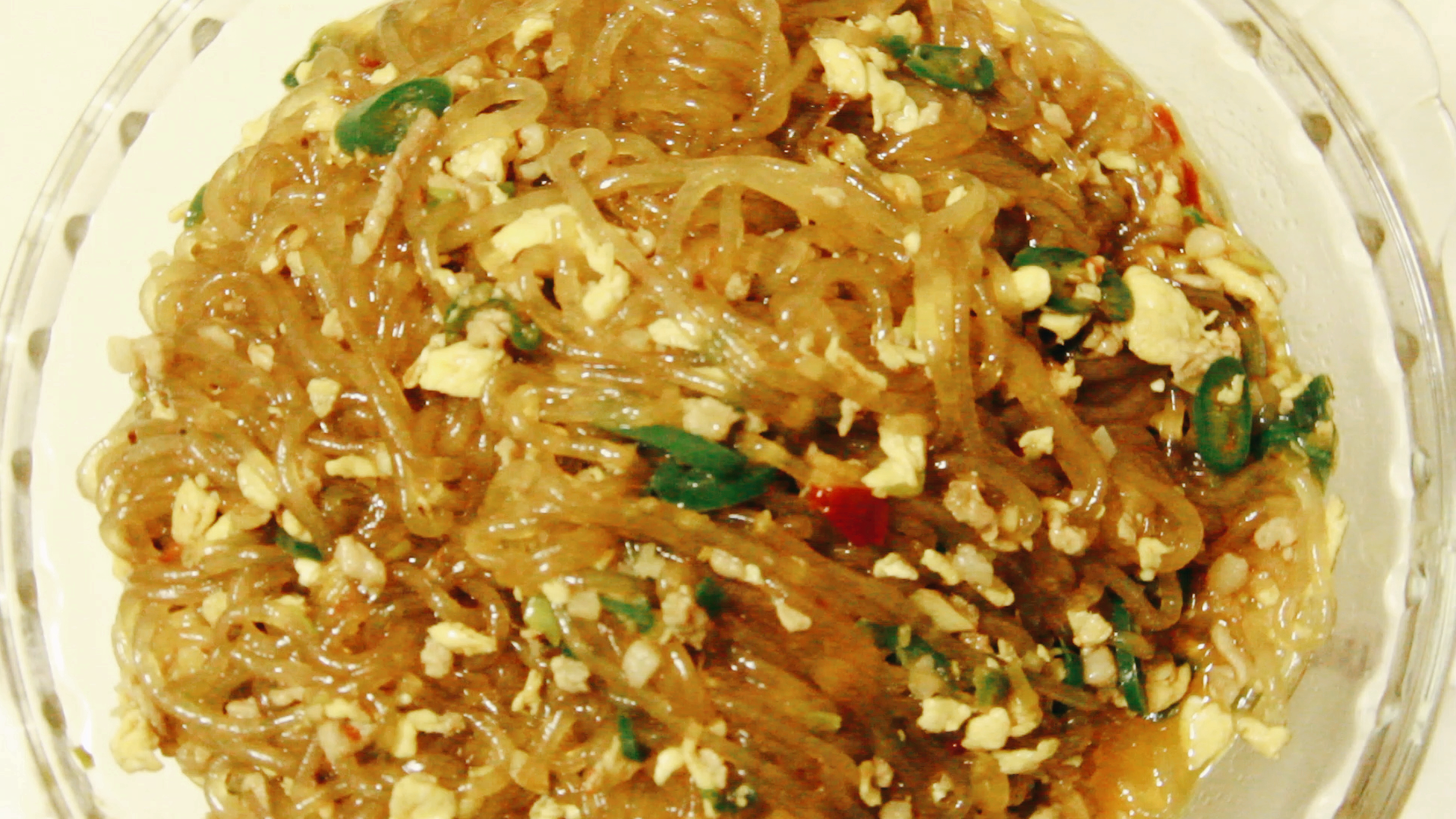 首先要做的,就是提前把粉条用清水浸泡,泡软的粉条除了能够节省炒制时间,更方便的是,我们用剪刀随意把它们剪短,不用担心扯断时碎一地,