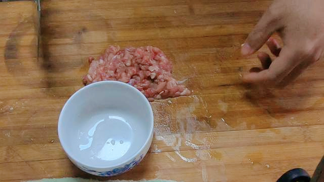 肉先切成片然后切成丝,最后切成一粒一粒的,这绝不是表现有多勤快,也不是说我要计算自己到底吃了多少粒儿,只是觉着这样比剁成肉馅吃着香,