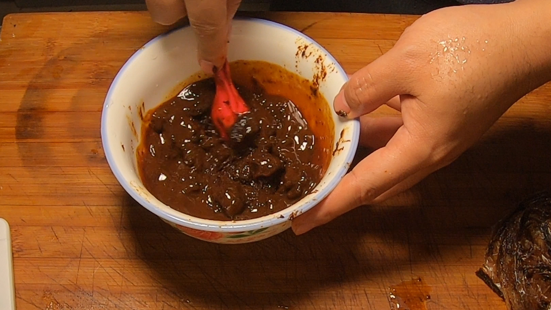 趁着清水冲的空挡时间,我们还需要再用黄酒澥开一袋干黄酱,依然要搅匀,