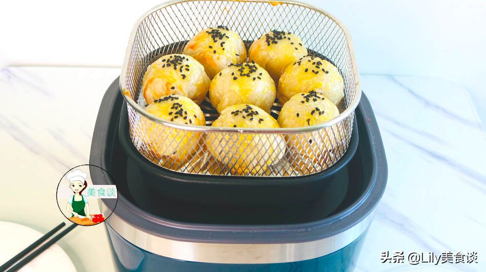 8、这里用的空气炸锅来烤(也可以用烤箱来烤),180度预热5分钟,然后烤20分钟即可。