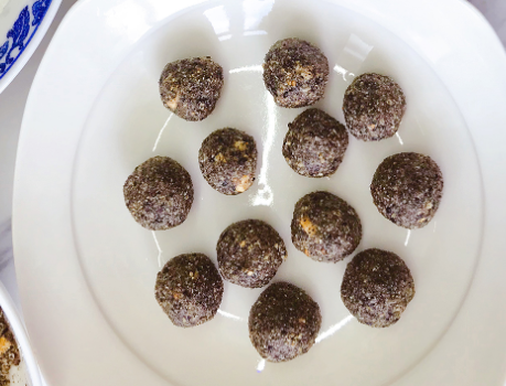 备用食材:糯米面1000克,黑芝麻70克,熟花生70克,核桃仁50克,蔓越莓碎20克,面粉10克,蜂蜜20克,黄油70克,白糖55克;