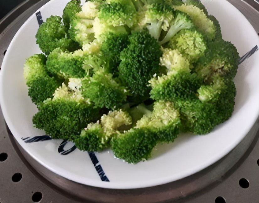 2、西蓝花清洗干净之后不要焯水,上锅用大火蒸2分钟左右,这样可以保证西蓝花的口感。