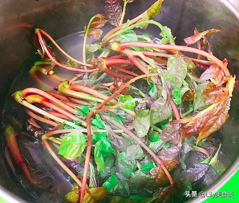 需要注意的是,不管是红叶香椿还是绿叶香椿,它们都含有很高的亚硝酸盐,在烹饪凉拌或者炒之前,都建议要先焯水一下,沸水下锅焯水1分钟,这样可以有效的去除亚硝酸盐,吃起来更健康美味,这一步不能省略。一次的食用量也不宜过多,适当地吃一些就可以了。