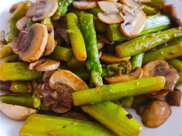 芦笋的做法花样有很多,在我们家,多以清淡为主,最喜欢的做法莫过于用芦笋炒口蘑了,新鲜芦笋的甘甜混合着口蘑鲜嫩爽滑的味道,每次在家,我都能多吃下两碗大米饭。
