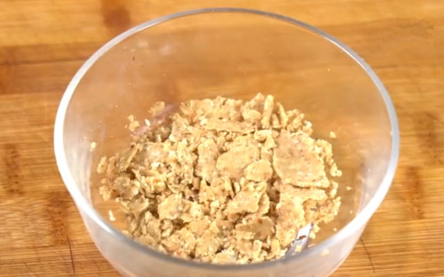 4.花生米去皮,我们把炒好的核桃仁、花生米、白芝麻装到一个袋子里,用擀面杖给它碾碎,当然你要是有其他工具也是可以的。