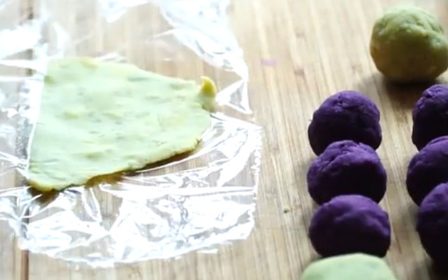 10.然后包入紫薯球,这样不粘手更好操作。