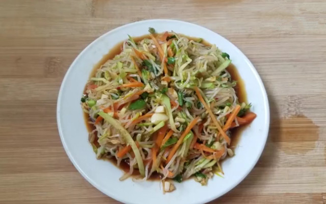 豆芽、胡萝卜、香菜、黄瓜、清水、盐、陈醋、白糖、生抽、味精、辣椒油、香油